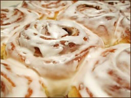 To prepare the glaze: In a medium-sized bowl, combine the butter, confectioner's sugar, and cinnamon. Work together with a spoon until blended. Stir in the vanilla and 2 tablespoons of the milk. Stir in as much additional milk as needed to make a smooth glaze with a good spreading consistency. Spread over the hot rolls and let the cool for about 15 minutes. Serve warm.